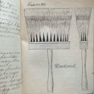 "De daskwast, zie figuur XVI, een der duurste kwasten die de schilder gebruikt, wordt van het haar van den das gemaakt. Niet zelden wordt het dassenhaar vervalscht, met haar van de geit"