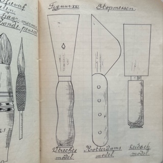 Tijdens zijn opleiding houdt Sluijter een grijsgroen schrift bij met aantekeningen over de theorie van de schildersopleiding. Daarin veel aandacht voor de keuze van de juiste kwast afhankelijk van het werk en de gebruikte verf. Op de voorzijde van het schrift staat met sierlijke letters: